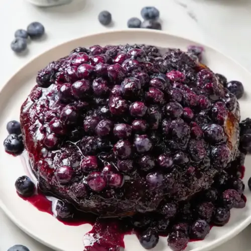 Cook the Blueberries: In a small skillet over medium heat, combine the remaining 1/4 cup sugar and blueberries. Cook for about 5-7 minutes until the blueberries start to burst, creating a delicious syrup.