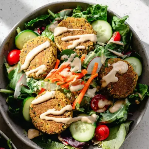 This Baked Falafel Salad with Two Creamy Dressings is a delightful journey through textures and flavors that uplift the everyday meal into something special. From the tender falafel to the creamy, wholesome dressings, this dish promises to be a hit at your table.