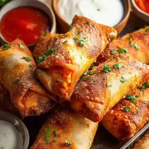 Buffalo Chicken Egg Rolls are more than just a snack; they’re a delicious reminder of family, comfort, and joy! The blend of spicy filling and crispy exterior is sure to win over any crowd. I encourage you to give this recipe a try—each bite is a little piece of heaven!