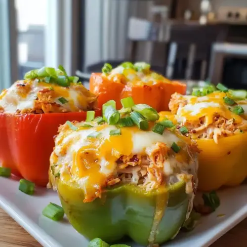 Buffalo Chicken Stuffed Peppers draw inspiration from the classic flavors often found in Buffalo wings but give them a fresh twist. Originating from the need to create a healthier version of this beloved dish, they feature sweet, crunchy bell peppers stuffed with a creamy mixture of shredded chicken, spicy buffalo sauce, and melty cheese. Each bite offers that delightful crunch, followed by a creamy, tangy explosion within.