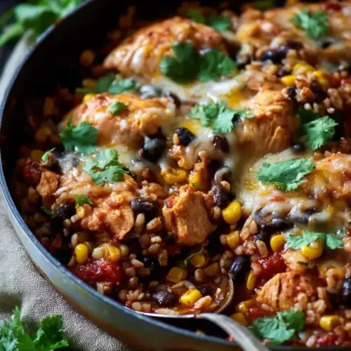 Presentation: Dish out the skillet in a vibrant colored bowl, sprinkle with extra cilantro, and a few lime wedges for an appetizing look.