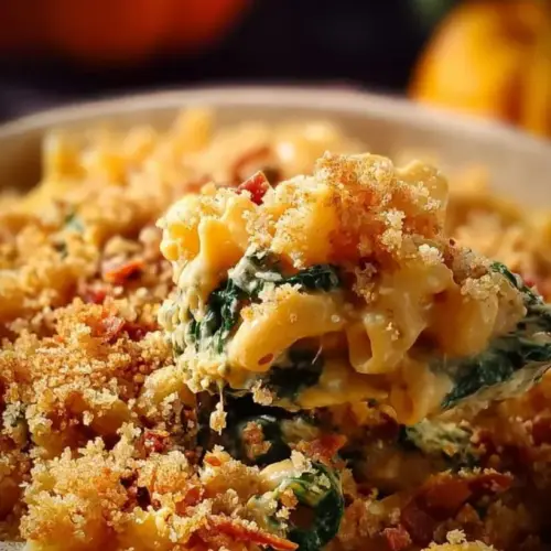 In summary, Creamy Pumpkin Mac and Cheese with Bacon and Spinach is not just a dish; it’s an experience that encapsulates the essence of comfort food. It’s perfect for chilly nights, family gatherings, or cozy weeks at home. I encourage you to give it a try—you might just find it becoming a new favorite in your household!