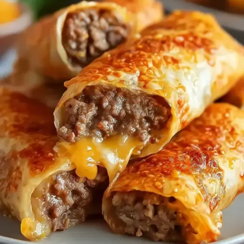 These scrumptious bites combine all the delicious flavors of a cheeseburger, but they’re wrapped in crispy egg roll wrappers for an irresistible crunch. The savory ground beef, melty cheese, and tasty seasonings come together to create a delightful snack or appetizer that is sure to please anyone lucky enough to take a bite. What makes these twists truly special? It’s not just the incredible taste; it’s the nostalgia they bring and the joy of sharing them with family and friends.