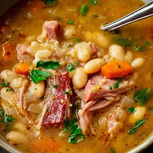 The textures are delightful: creamy beans, tender ham pieces, and chunky vegetables all come together in a thick, broth-rich embrace. You might find the first spoonful warms your belly while the second fills your heart—a true comfort food!