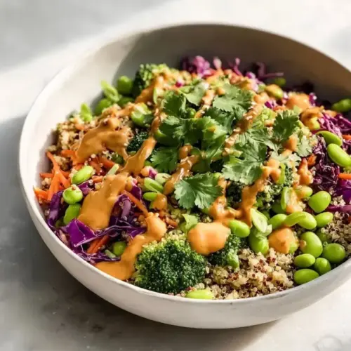 The Crunchy Asian Edamame Salad with Peanut Dressing hails from the vibrant culinary traditions of Asian cuisine, where fresh ingredients and bold flavors reign supreme. This salad is not just a dish; it’s a tapestry of textures and tastes. Picture the snap of fresh veggies like crunchy carrots and robust cabbage, perfectly complemented by the tender yet firm edamame.