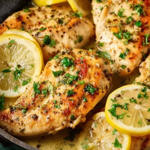 A flavorful and comforting dish featuring tender chicken breasts with a zesty lemon and garlic glaze, perfect for any occasion.