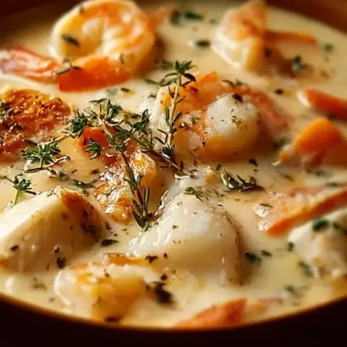 Imagine diving into a velvety bowl filled with tender bites of white fish, succulent shrimp, and delicate scallops, all swimming in a rich, velvety broth. The interplay of flavors and textures—from the silky cream to the hearty potatoes and briny mussels—helps paint a picture of coastal life and beloved family gatherings.
