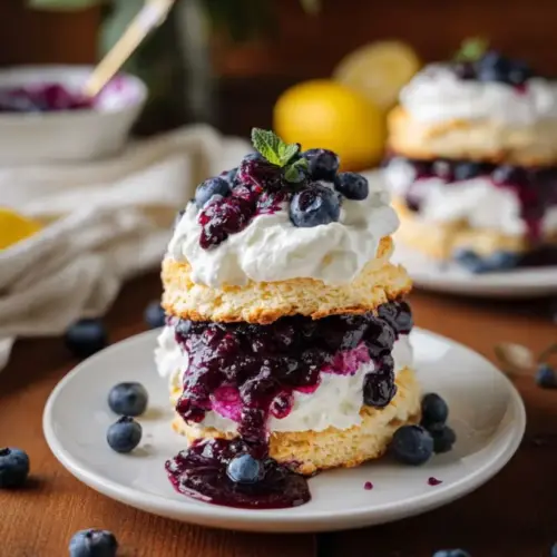 To assemble, layer the biscuits with the cooled blueberry topping and a generous dollop of whipped cream. Serve immediately for the freshest experience!