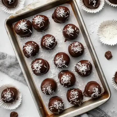 Add Finishing Touches: If you’d like, sprinkle coconut flakes over the dipped candies while the chocolate is still wet.