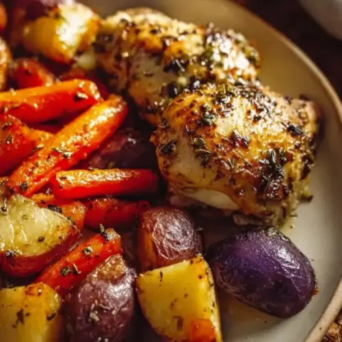 Oven roasted chicken and veggies is a timeless dish that’s cherished in kitchens worldwide. Originating from various culinary traditions, this simple yet flavorful meal brings together succulent chicken—whether thighs or breasts—with vibrant seasonal vegetables. The result is an explosion of flavors and an array of textures; the chicken emerges juicy and tender, while the vegetables caramelize perfectly, enhancing their natural sweetness.