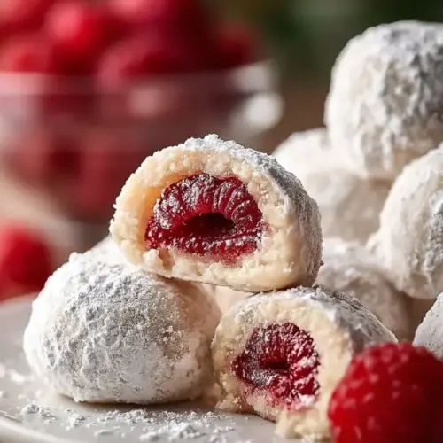 These Raspberry Almond Snowball Cookies are not just simple treats; they are a gateway into cherished memories and warm gatherings. With their delicious flavor, soft texture, and ease of preparation, you’ll find that baking them is just as enjoyable as savoring each bite. I encourage you to try this recipe and see how they quickly become a favorite in your household. If you’ve loved these cookies, please leave your thoughts in the comments, and don’t forget to check out my other delightful recipes featured on my blog! Happy baking!