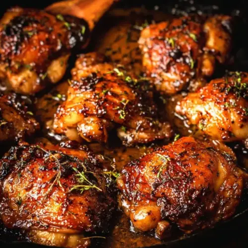 6. **Bake**: Return the chicken thighs to the skillet and spoon the sauce over them. Bake in the preheated oven for **20-25 minutes**, flipping halfway through. Use a meat thermometer to ensure the internal temperature reaches **165°F (75°C)**.