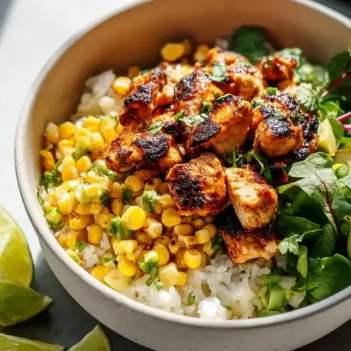 These Street Corn Chicken Rice Bowls are so much more than a meal; they’re a comforting dish filled with memories, spices, and colorful ingredients. I encourage you to give this recipe a try—you’ll not only satisfy your taste buds, but you might even create some wonderful memories around the dinner table! Share your experience in the comments below and check out my blog for related recipes like zesty burrito bowls and creamy enchiladas. Happy cooking!