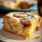 A delightful cinnamon roll cake that combines the classic flavors of cinnamon rolls with a moist cake base, topped with a creamy glaze.