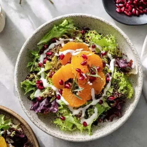 The Winter Salad is a colorful medley of fresh ingredients designed to brighten up your plate and your palate during the colder months. Traditionally, salads can feel lackluster in the winter, but this one bursts with life thanks to ingredients like sweet tangerines, pomegranate seeds, and crunchy cashews.